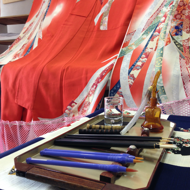 渡邉さんの本業は「着物洗い洗練」クリーニング業。着ている着物はその渡邉さんの手によって甦らせていただいた物。子育て真っ最中の頃、折に触れ着ていた為、シミや汚れが付いたまま30年近くタンスの奥におざなりになっていたものを何度も試作をしながら少しずつ手間を掛け綺麗に復元してくださいました。